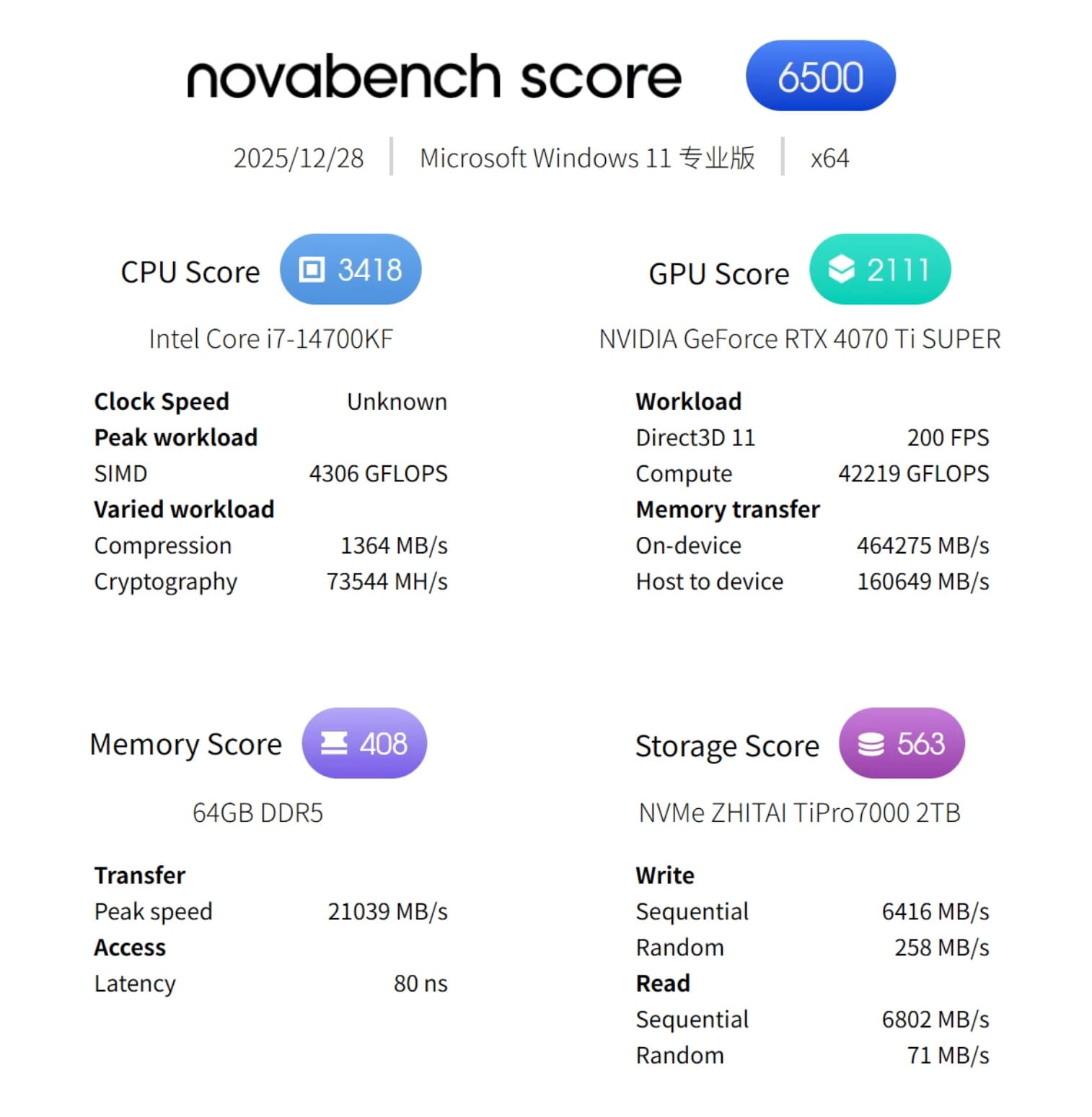 我对手上 2 台电脑进行了跑分,首先是我的台式机: